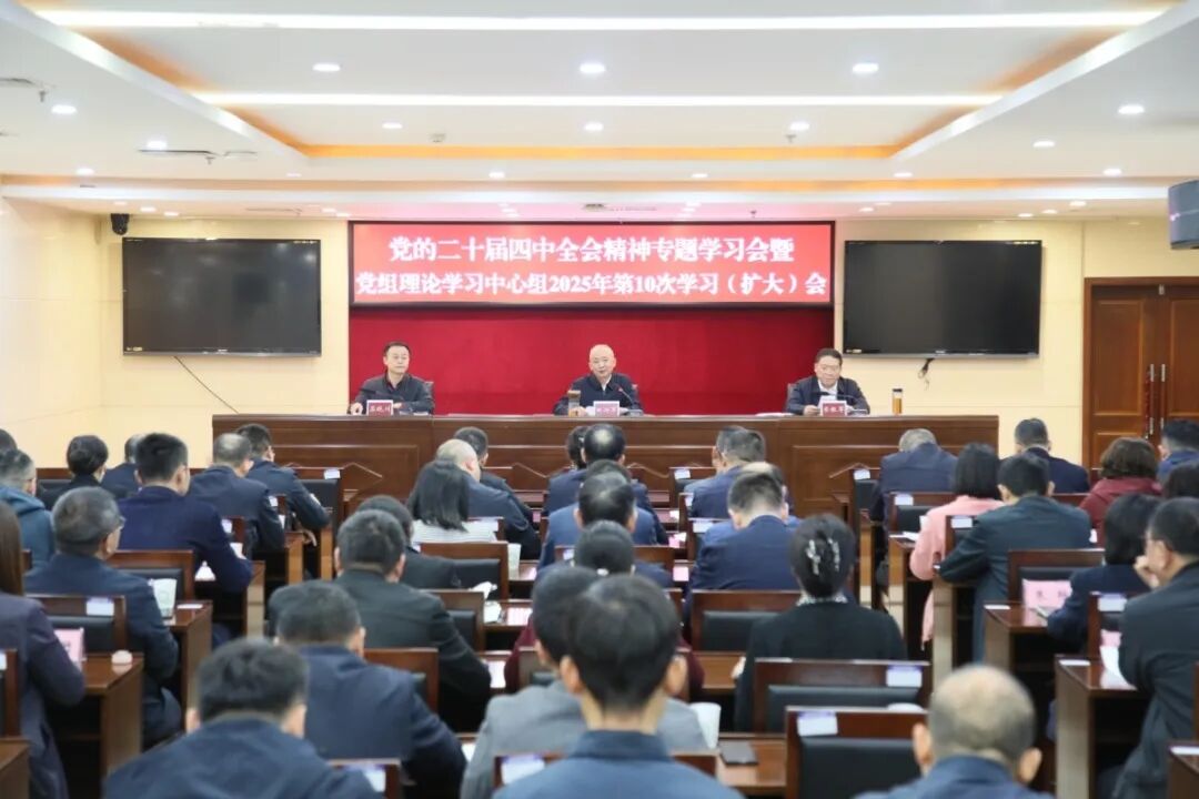 10月30日,省中医药局召开党组理论学习中心组学习(扩大)会,专题传达学习党的二十届四中全会精神,落实省委常委会(扩大)会议、省政府常务会议有关部署要求。局党组书记、局长田兴军主持会议并讲话,局党组成员交流研讨学习体会。