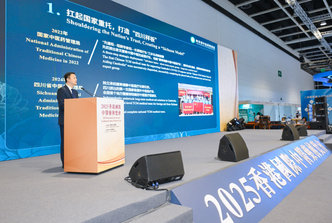 9月25日,由紫荆文化集团主办的2025香港国际中医药大会在香港会议展览中心启幕。省中医药局副局长苏晓川参会,并在“2025紫荆中医药国际峰会”上,以“践行人类卫生健康共同体理念:四川中医援外医疗队的柬埔寨实践”为题作主旨报告。