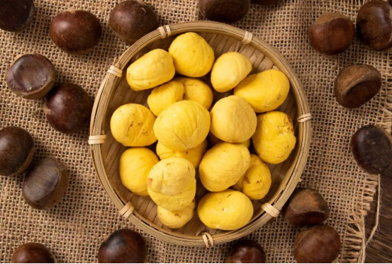 板栗中富含淀粉、蛋白质,还含有多种不饱和脂肪酸和维生素,对高血压、冠心病和动脉硬化等疾病有益处。此外,板栗还含有丰富的核黄素,有利于缓解口腔溃疡。