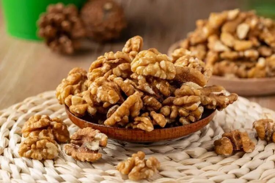 在食用量上,由于核桃含油脂较高,不宜过量进食。进食量过大的话,容易导致拉肚子。而且,过量食用核桃,还会造成血糖剧烈波动,尤其是对于很多患有糖尿病的朋友,油脂对血糖的影响比糖分更大。膳食指南建议一般成人每天吃10克坚果,也就是说,一天吃两个核桃就足矣,最多不要超过三个。建议不要在睡前2小时食用。
