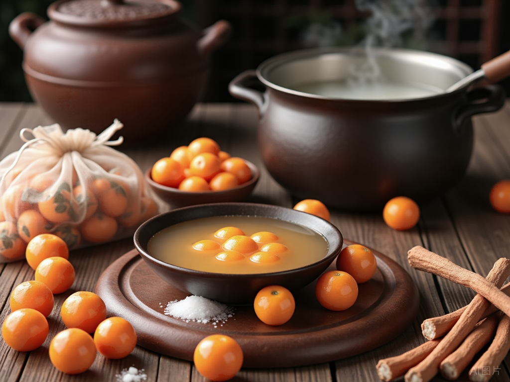 金桔在中医理论中辛温理气,能化痰止咳、健脾开胃,果皮中的挥发油和维生素C含量尤其丰富;甘草则被誉为“中药国老”,性平味甘,可润肺化痰、补中益气,还能调和诸药、缓解咽喉肿痛。二者搭配,既平衡了金桔的温性,避免上火,又增强了止咳护嗓的功效。