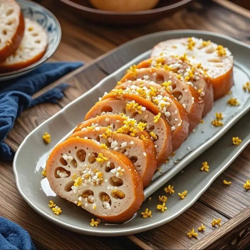 功效:熟藕性温,可健脾开胃,益血生肌,止泻。桂花可散寒破结,化痰散瘀。藕、桂花与健脾益气的糯米合用,既可止泻,又能止血,尤宜脾虚泄泻、便血者。