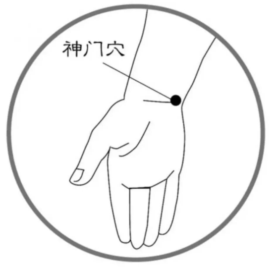穴位选择:1. 神门穴:腕掌侧横纹上,豌豆骨的下缘(手腕内侧横纹,靠近小拇指一侧的骨头边);