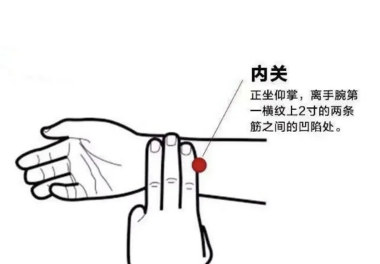 内关为心包经络穴,联络三焦经,散络于心系,可改善心脏疾患带来的心痛、胸闷等症状。