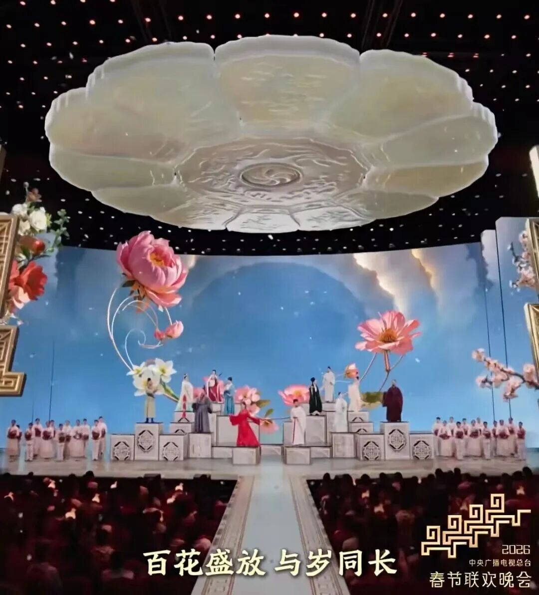 今年春晚舞台上的《贺花神》,以故宫博物院藏“白玉月令组佩”为蓝本,让十二花神从古画屏风后翩然而至。一月一花,一花一态,她们在舞台上惊艳绽放,也为我们叩响了通往岁时节律的大门。