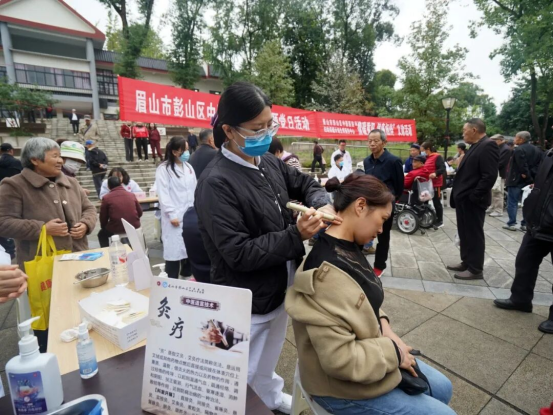 在中医适宜技术体验区,艾香氤氲,吸引了不少群众驻足体验,近距离感受灸疗、刮痧、穴位敷贴、耳穴埋豆等中医疗法“简、便、廉、验”的独特魅力。