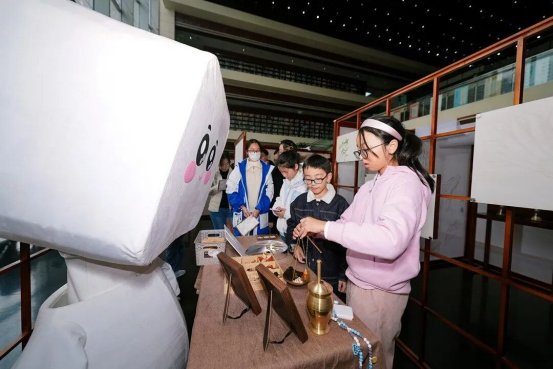 亲手制作中草药饰品的地方更是排起了长队。读者可以将散发着药香的草本亲手制作成独一无二的中草药饰品,把文化记忆“戴”回家。此外,一座国风诗画Photobooth也吸引了不少读者驻足,大家置身光影画卷,与一味诗草、一句佳咏合影。