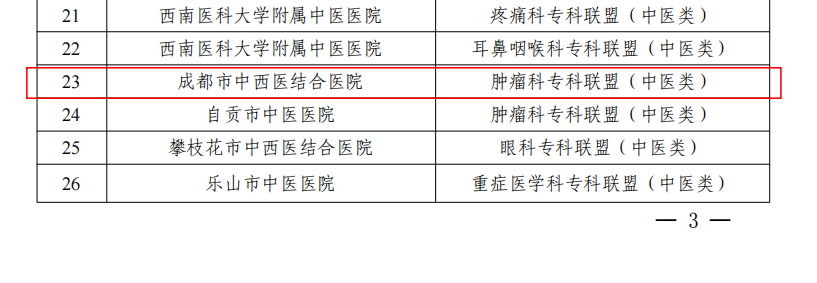 同时,医院凭借肿瘤诊疗领域的中西医结合特色与扎实实力,成功入选第二批“四川省临床重点专科联盟单位”(肿瘤科专科联盟·中医类),肿瘤科构建起从预防、诊断、治疗到康复的全周期诊疗体系,下设五大亚专业,开展多项特色技术,以多学科协作模式为患者提供个体化综合诊疗服务。