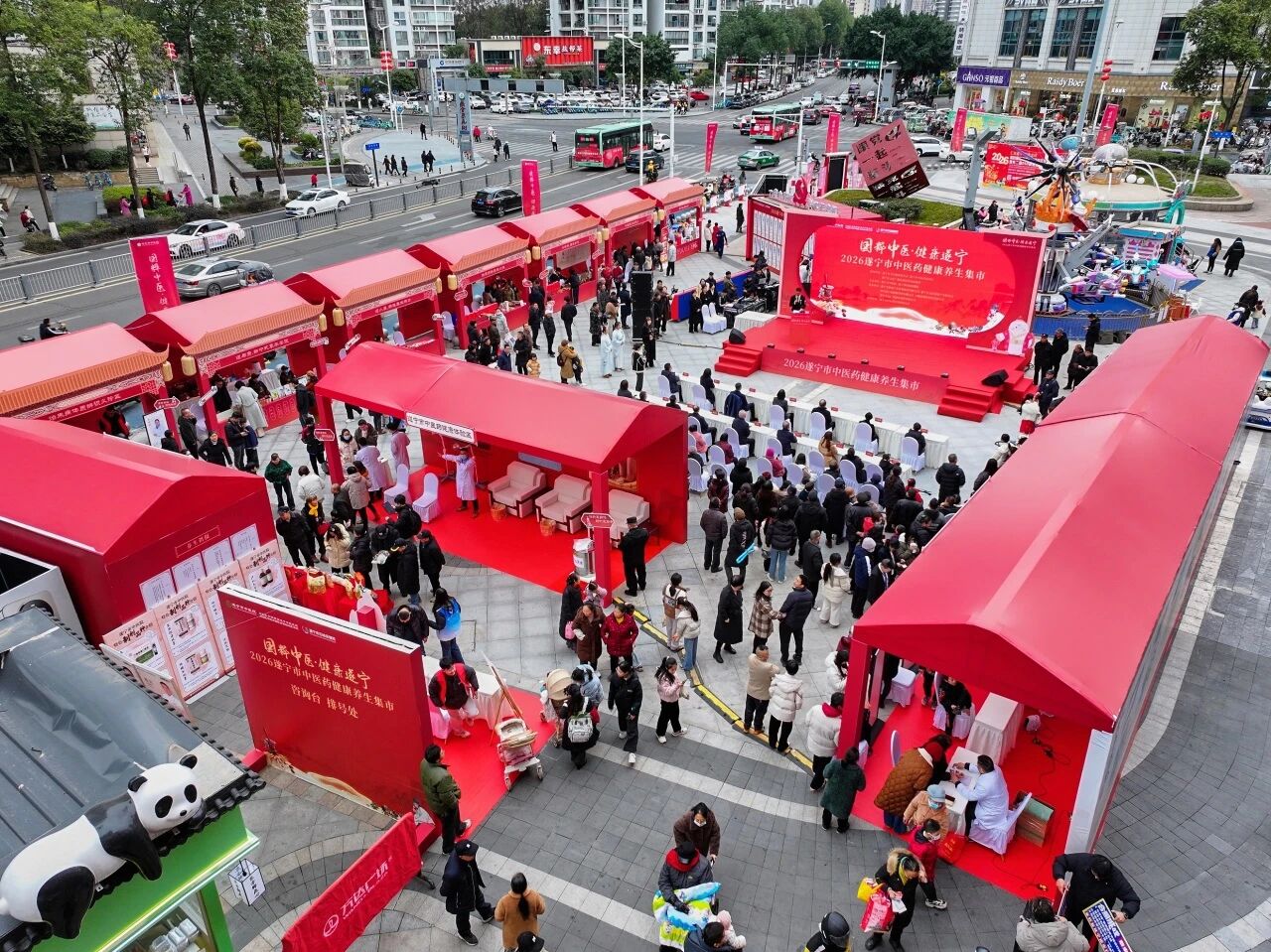 1月30日,由遂宁市卫生健康委、市中医药管理局指导,遂宁市中医院主办的“国粹中医 健康遂宁”2026遂宁市中医药健康养生集市在市河东新区万达广场开市。本届养生集市将持续到2月3日,开放5天。其间,遂宁市中医院50余名国省名中医“现场摆摊”义诊,为市民“零距离”免费问诊开方。