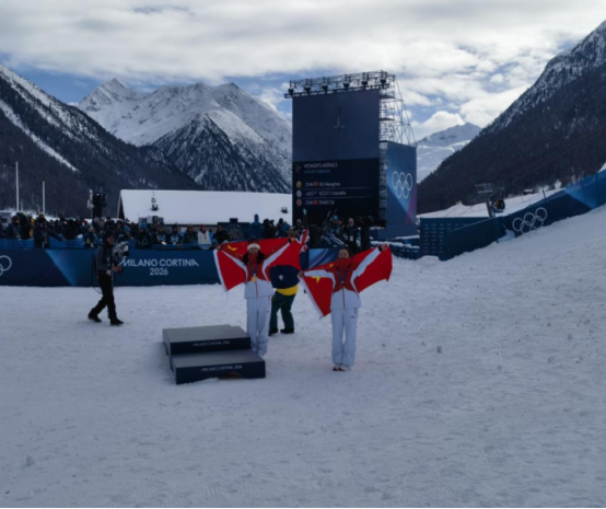 徐梦桃、邵琪米兰冬奥会赛后合影