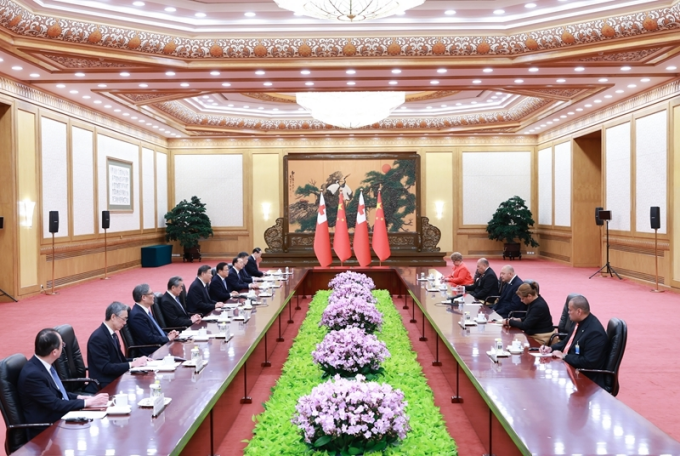 会见后,两国元首共同见证签署经贸、医疗、教育、发展等领域多份合作文件。